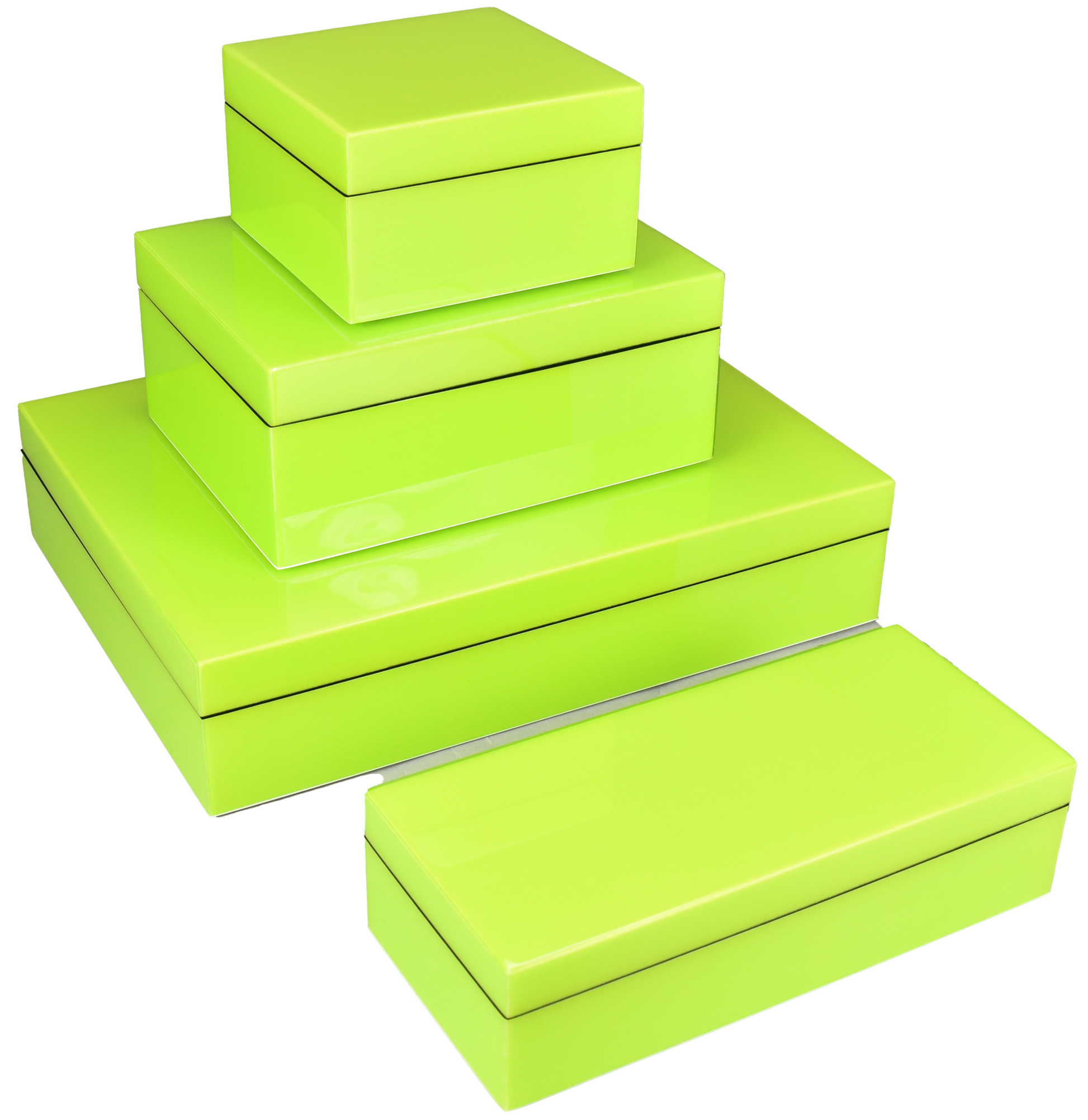 Pencil Box: 9" x 4" x 2" H, Acid Green Fabric with Lacquer Finish.