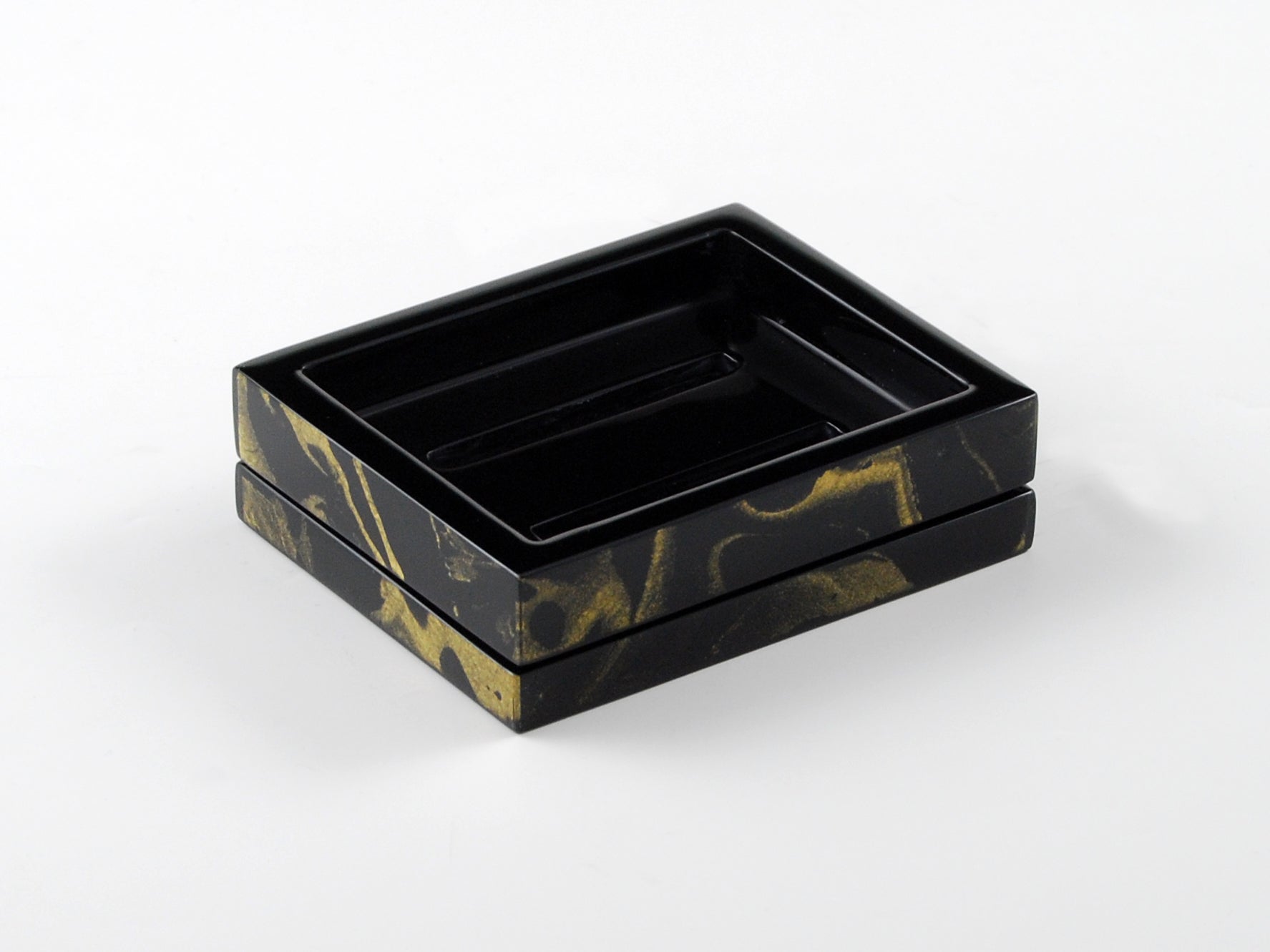 Soap Dish:, 4" x 5" x 1.5" H, Black Gold Marble Paper Inlay with Lacquer Finish.