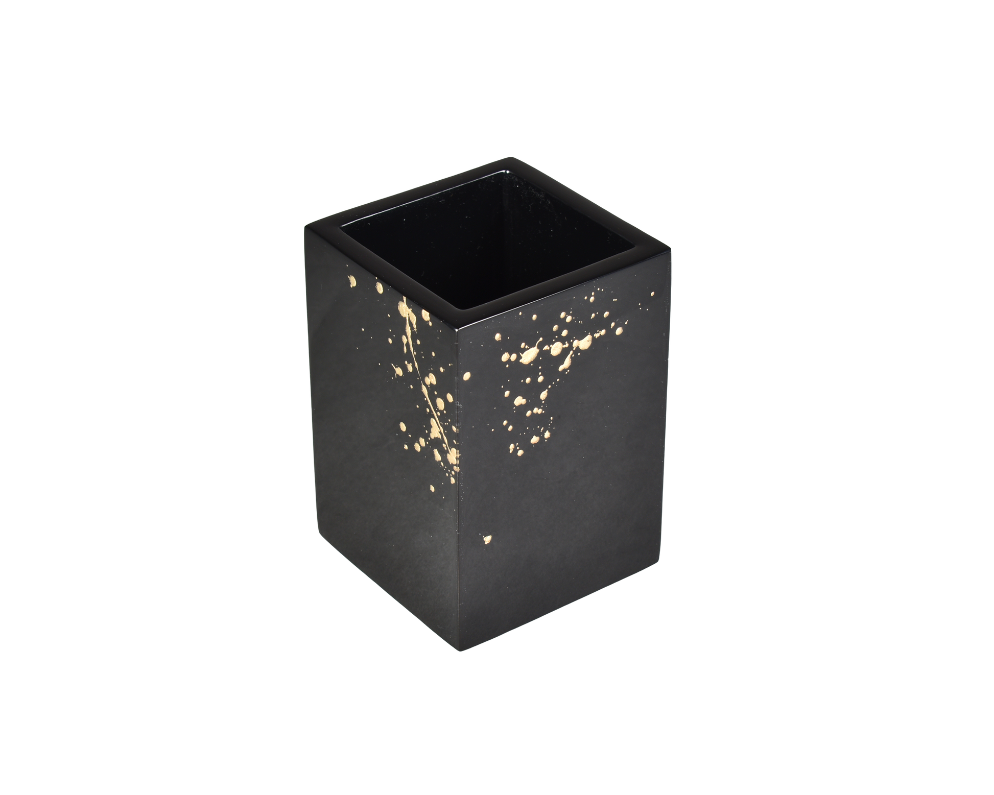 Brush Cup: 3" x 3" x 4" H, Black with Artful Gold ( Shine Gold Leaf ) Lacquer Finish.