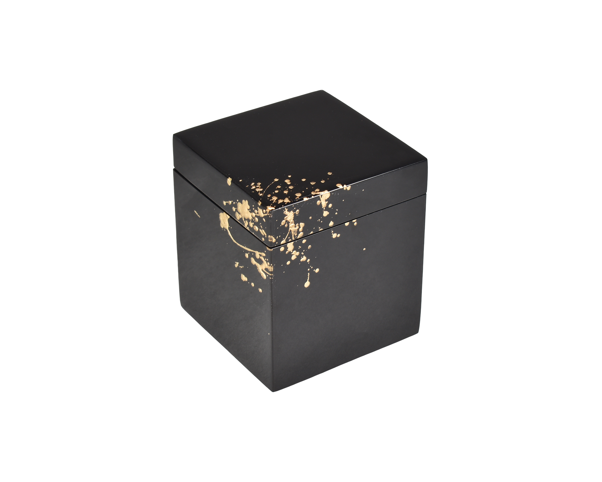 Q-Tip Box: 3.5" x 3.5" x 4" H, Black with Artful Gold ( Shine Gold Leaf ) Lacquer Finish.