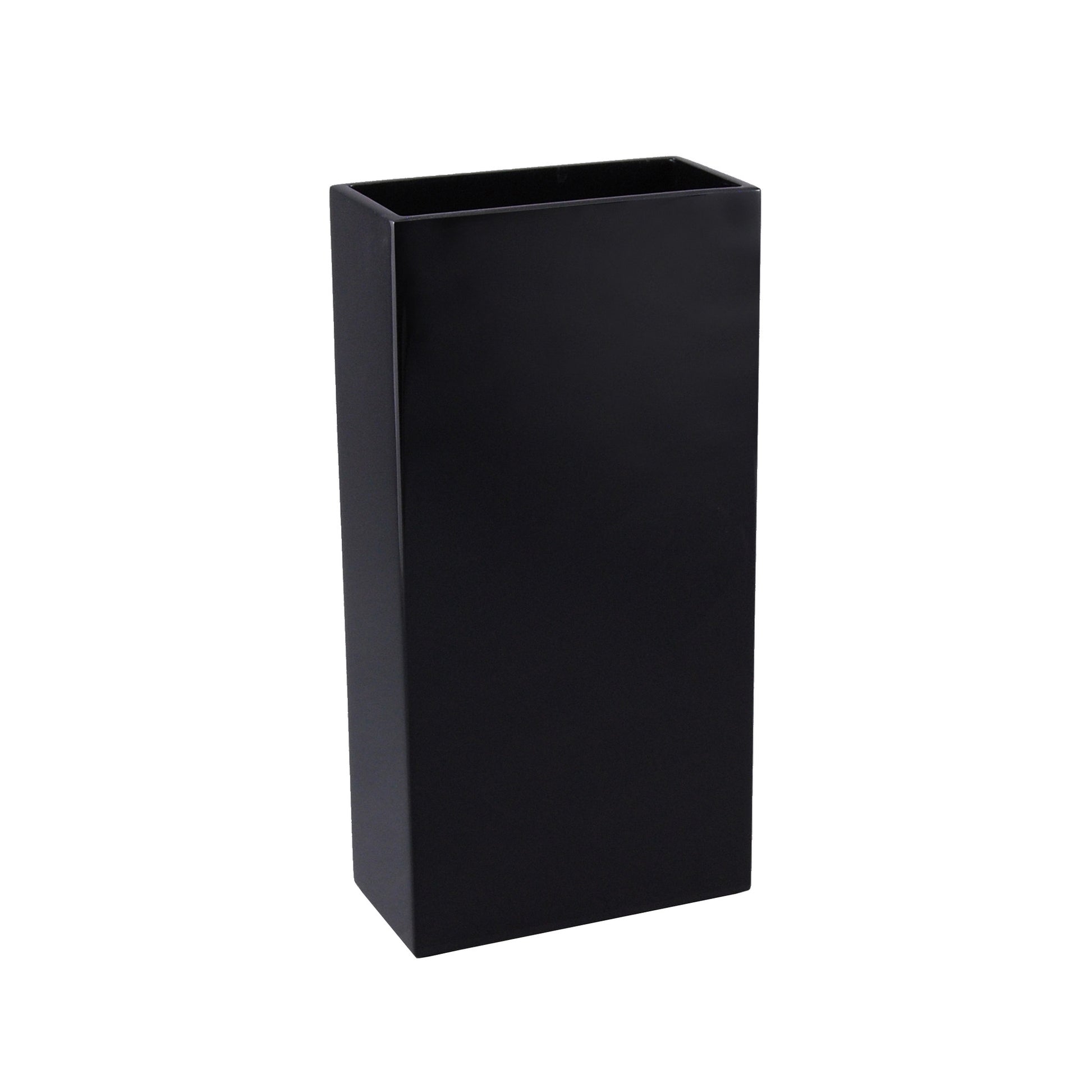 16" Flower Vase: 8" x 4" x 16" H, All Black with Lacquer Finish.