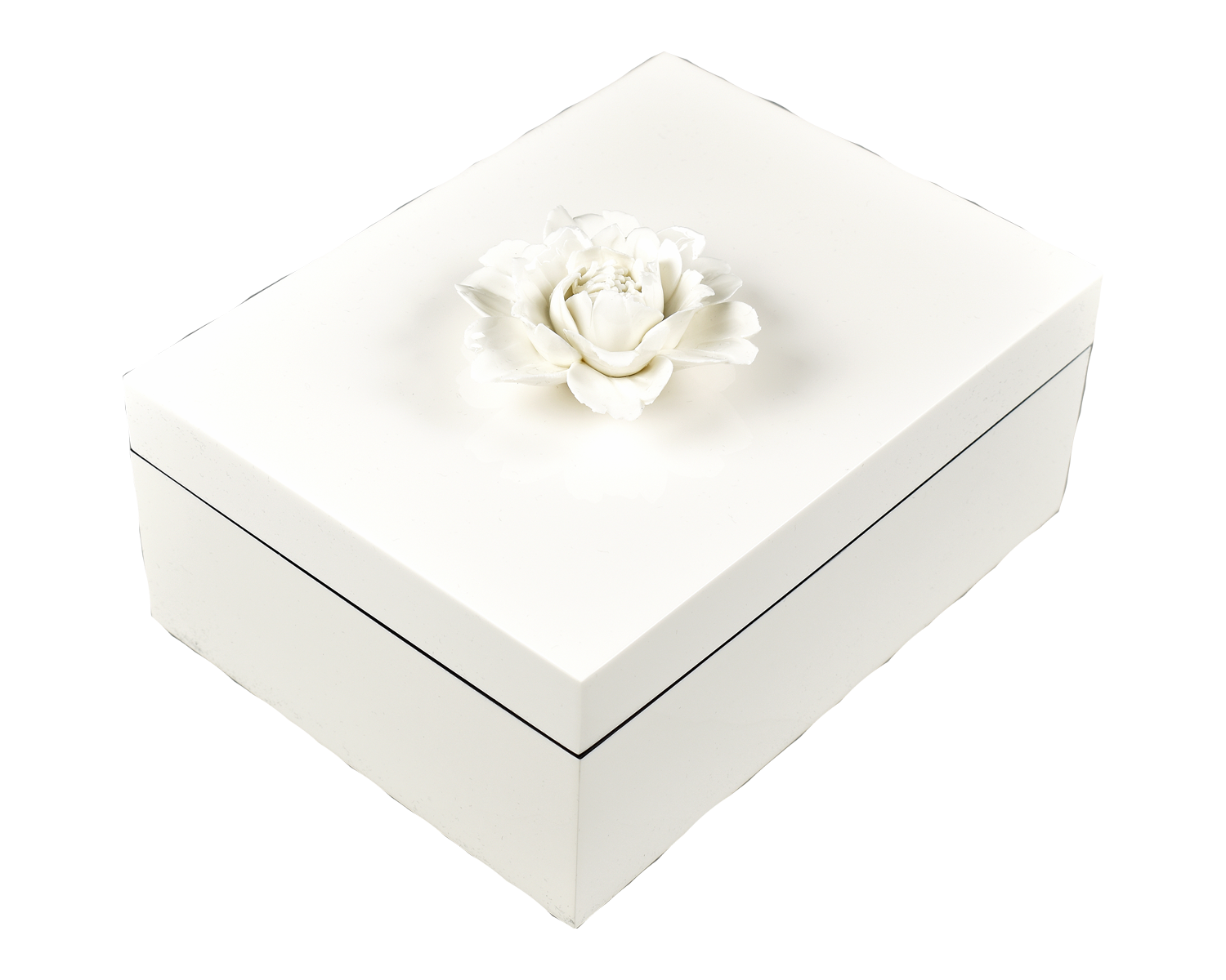Medium Box: 8"X6"X3.5"H, White with Porcelain White Flower