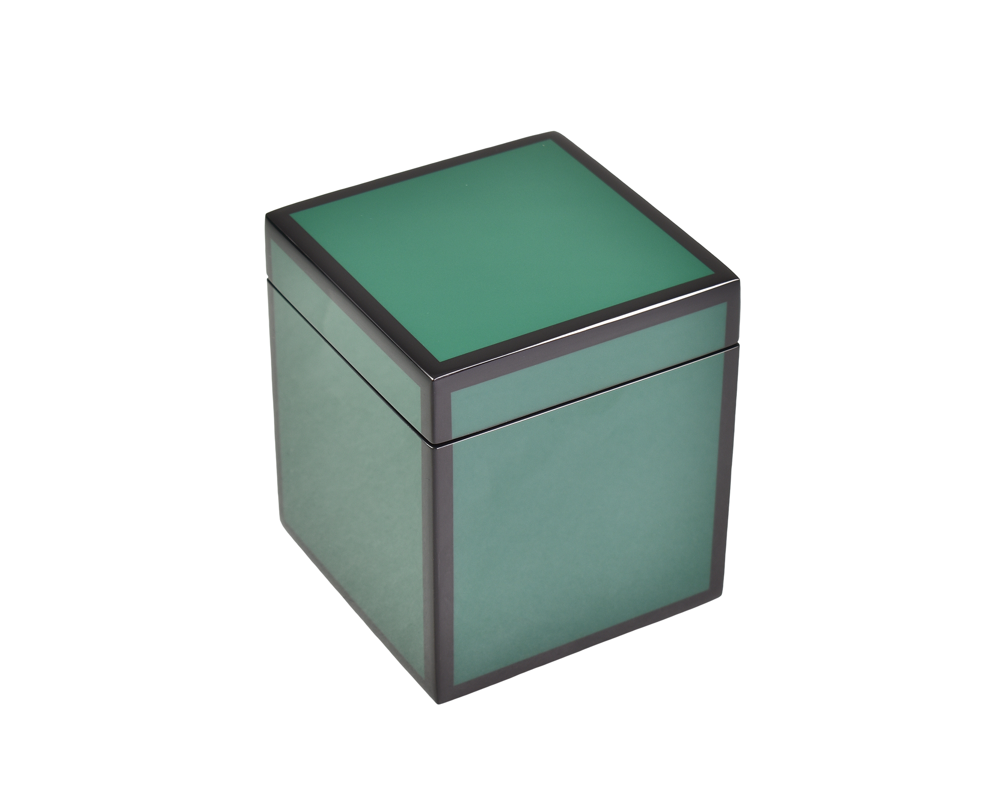 Q Tip Box: 3.5" x 3.5" x 4" H, Five Side Forest Green with Black Trim Lacquer Finish.