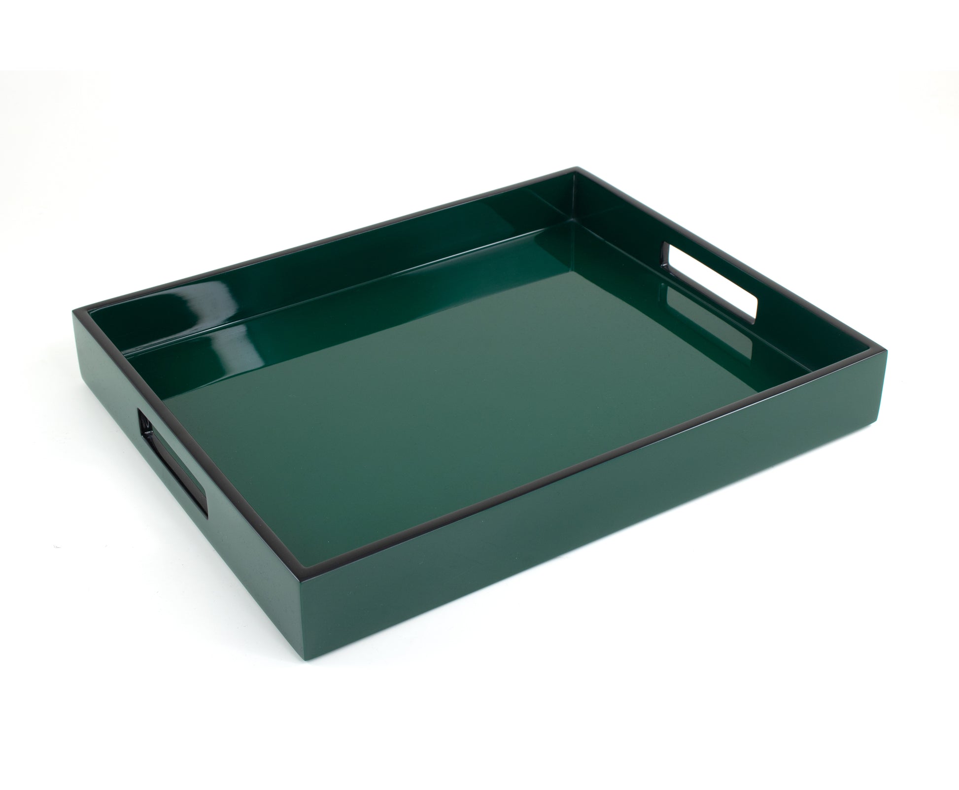 Reiko Tray: 15" x 12" x 2" H, Forest Green with Black Trim Lacquer Finish.
