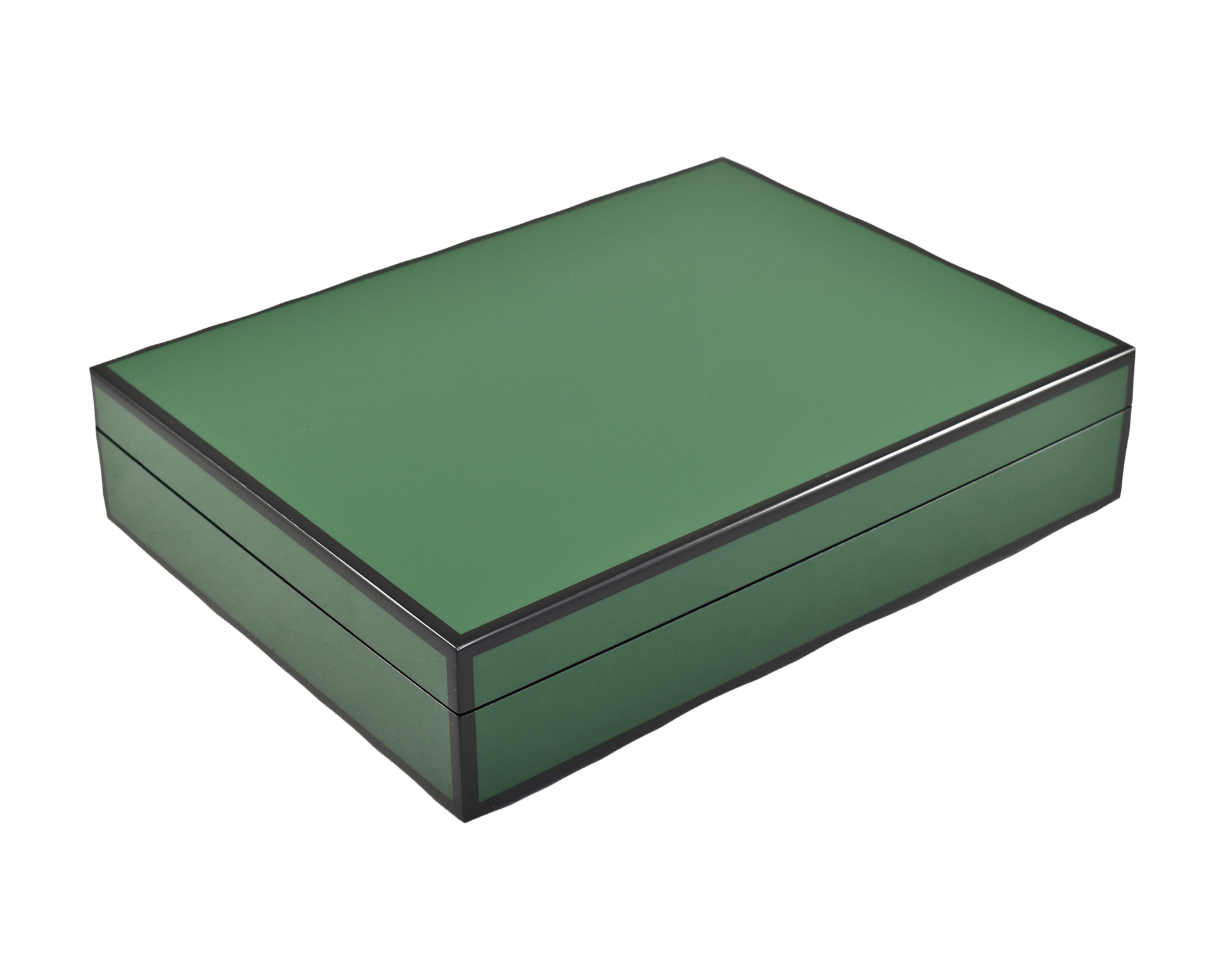 Stationery Box: 12.5" x 9.5" x 2.75" H, Five Side Forest Green with Black Lacquer Finish.