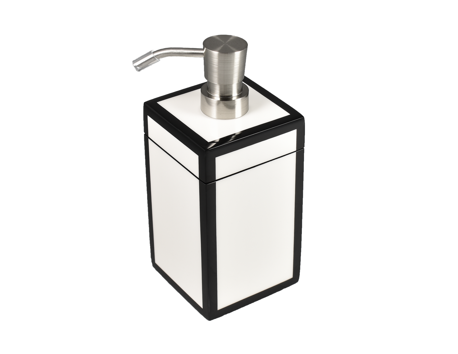 White with Black Trim Lacquer Lotion Pump, Metal Nozzle.